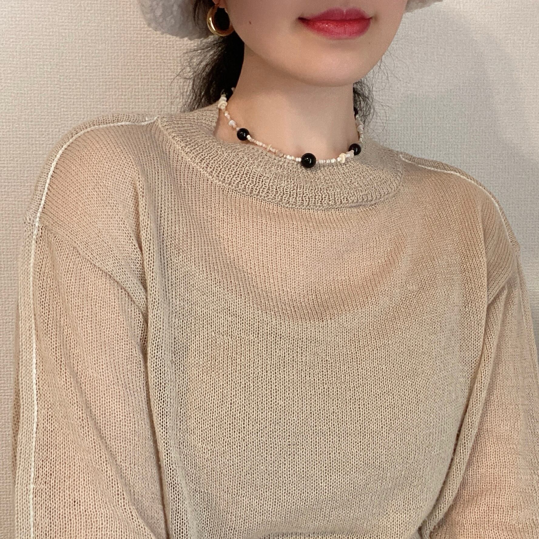 小さなシェルビーズがふわっと和らげます。